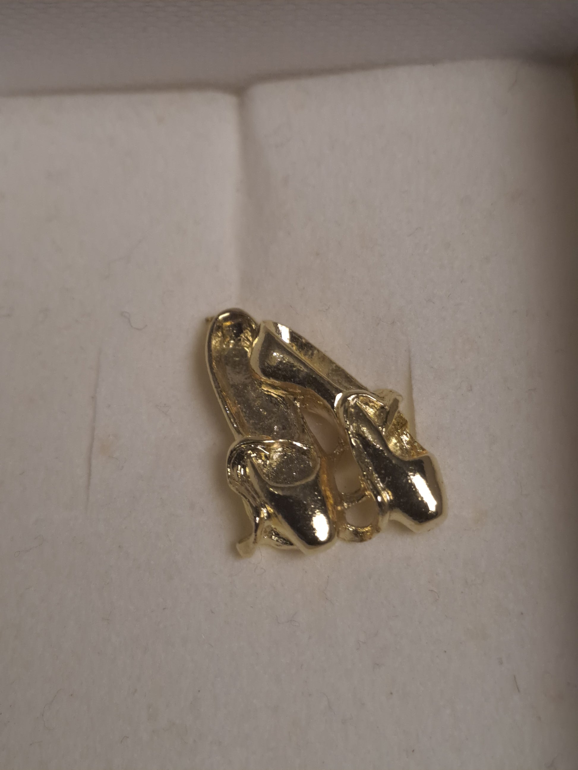 6 boxes with 24k gold finished broches. Made in USA. Boxes a bit worn. Size: Aprox 2 cm.