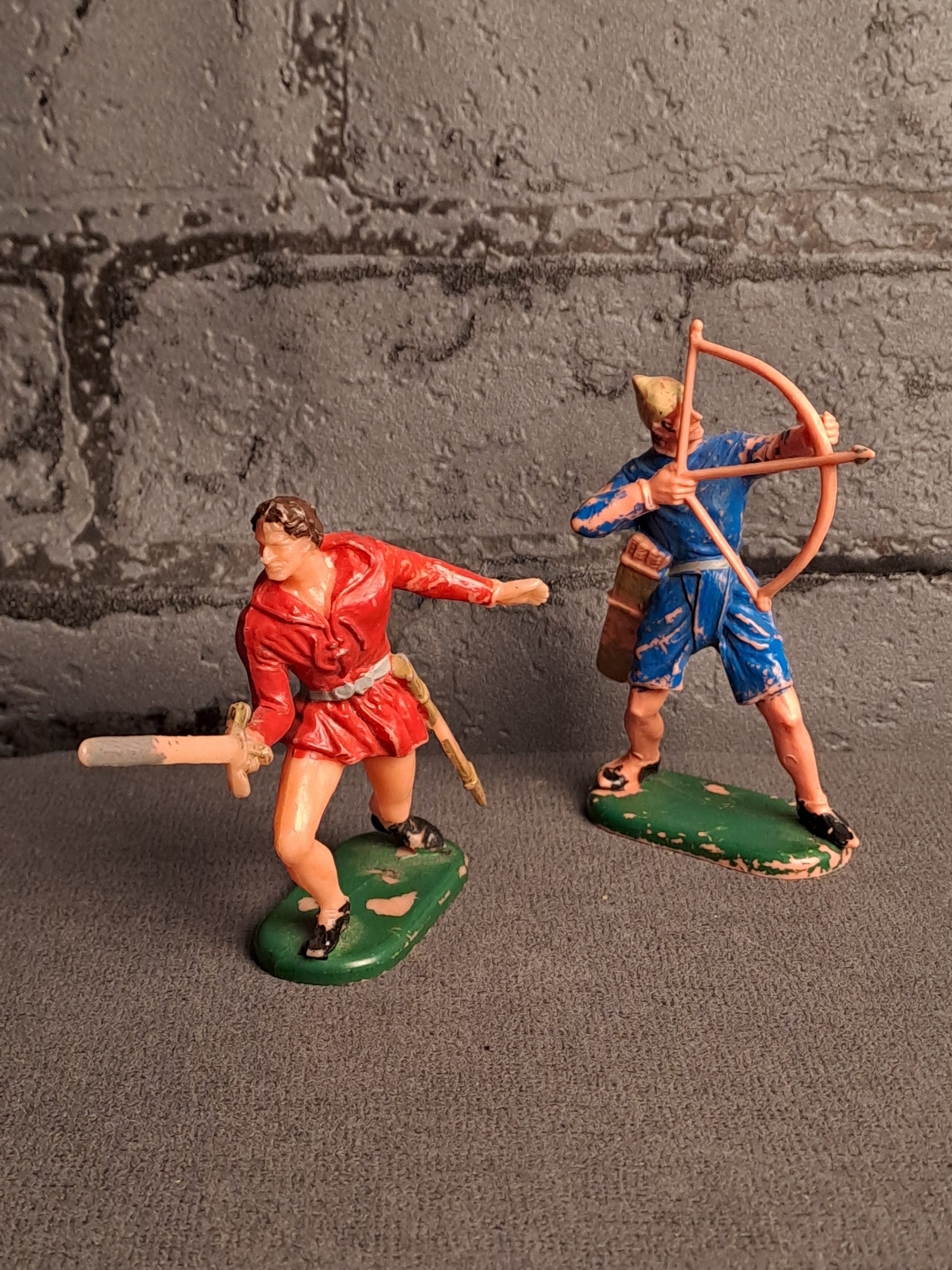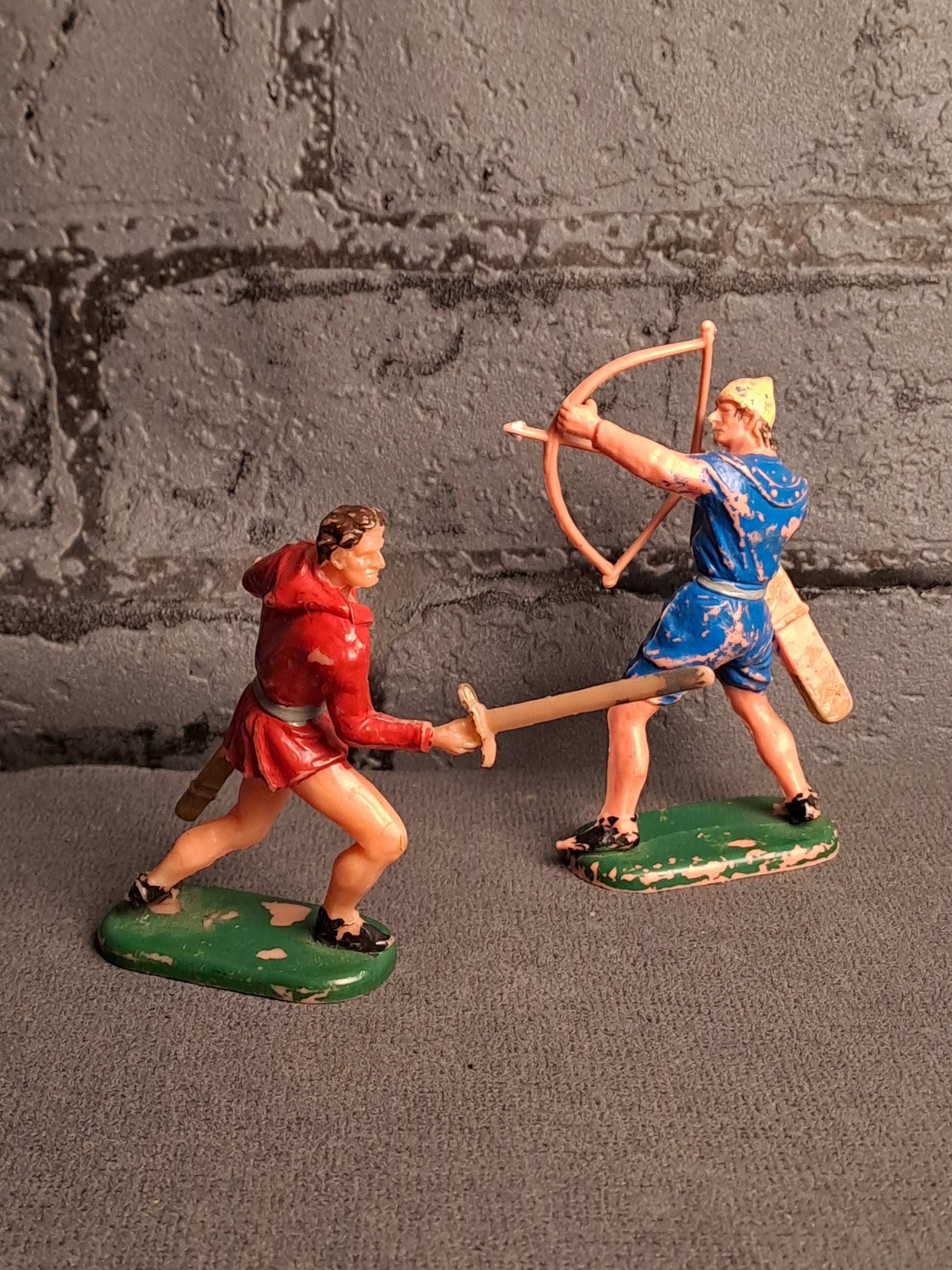 1 sværdkæmper og 1 bueskytte. Plastik. H: 7 cm.