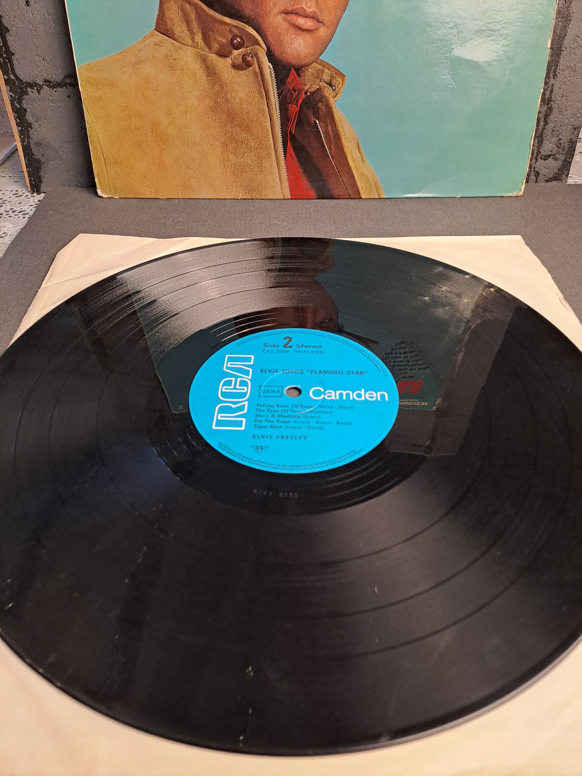 33 rpm. RCA. Vinyl good condition. Cover a bit worn. Comes with plastic protection sleeve.