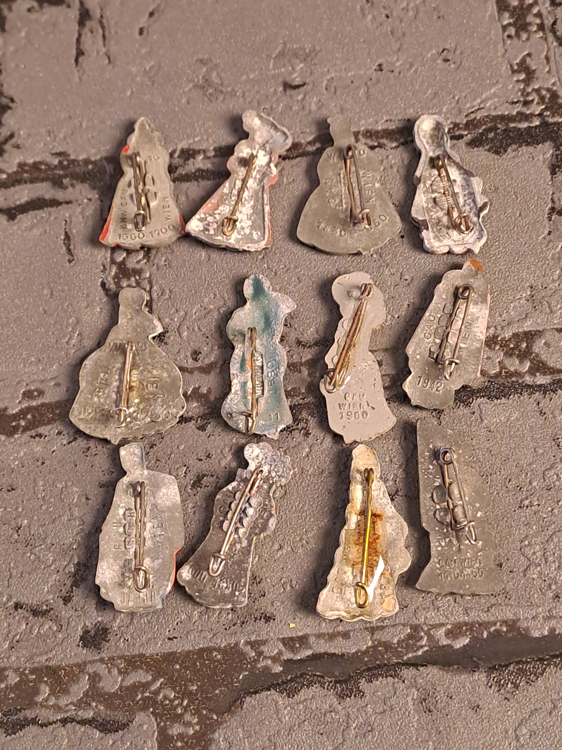 12 vinterhjælp. Alle med nåle. 1930erne til 1940'erne.